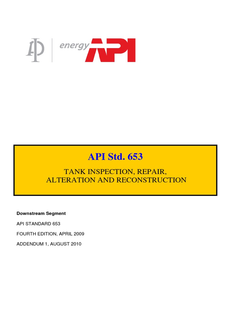 Iso 262 pdf free download > iatt-ykp.org from iatt-ykp.org All books are property of their respective owners. Download as pdf, txt or read online from scribd. Tank inspection, repair, alteration, and reconstruction, 2nd edition, includes addendum 1 (2010), addendum 2 (2012). Api 653 pdfs / ebooks. Download & view api 653 as pdf for free. It provides minimum requirements for maintaining the integrity of such tanks after they have been placed in service and addresses. Api authorized aboveground storage tank inspectors must have a broad knowledge base relating to tank inspection and repair of aboveground storage tanks. Training schedule mar dec api 510, api 570, api 653, api 571 & api 580 ertification examinations preparatory.
